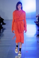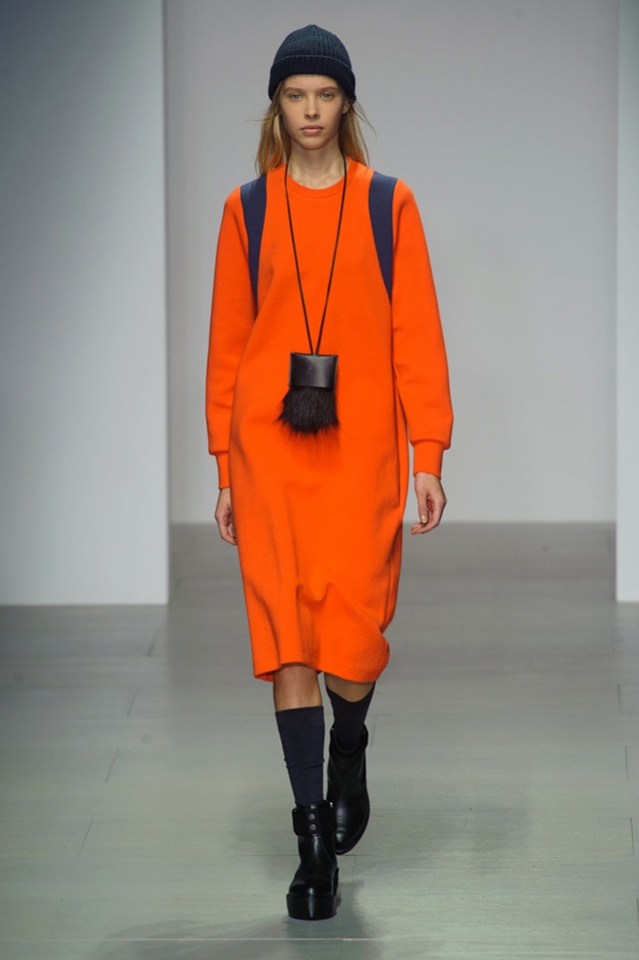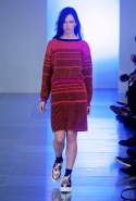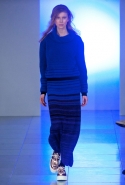 Лондонская неделя моды традиционно и самая безумная, и самая расслабленная — к модным показам и моде вообще здесь относятся не так серьезно, как в Нью-Йорке, Париже или Милане. Первое из значимых шоу Лондонской недели, Mark Fast, подтверждает этот тезис: яркие насыщенные цвета (оранжево-красный и фиолетовый), объемные складки, огромные шарфы, крутые пальто-халаты и расслабленные костюмы в духе 80-х. Все это можно просто надеть, даже не беспокоясь о хозяйственных ритуалах вроде глажки и отпаривания складочек, натянуть золоченые криперы и чувствовать себя абсолютным королем вечеринок даже по дороге на работу. А короткие вязаные платья с ворсистыми юбками-баллонами и вставками из черной сетки на животе и простые вязаные костюмы "топ+юбка" напоминают о том, что мода на спортивный стиль уходить в ближайшее время никуда не собирается.
