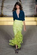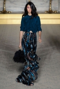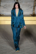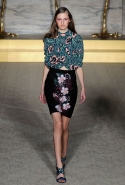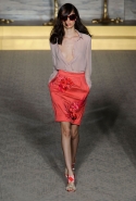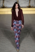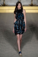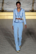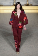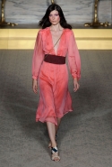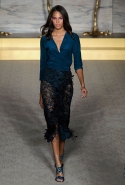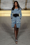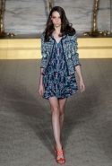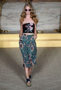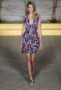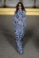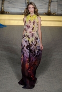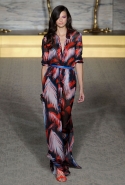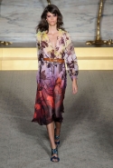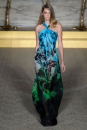 Очередным покоренным красавицей дизайнером стал Мэттью Уильямсон. Он создал прекрасную коллекцию, вдохновленную настроением 70-х и одной из главных героинь этого десятилетия — видимо, для Мэттью Мари стала идеальным воплощением той славной эпохи и ее гедонистического духа. Причем нашлось в коллекции место не только для стандартных богемно-расслабленных кодов десятилетия, но и для вполне конкретных моментов биографии Хелвин. Наполовину японка, она выросла на Гавайях, и темы загадочного Востока и безмятежных райских островов явно считываются в новых принтах Matthew Williamson: и в пальмовых листьях, мимикрирующих под страусиные перья шоу-гелз, и в цветах сакуры, и в других цветах, словно высвобожденных из гавайских венков в руках островитянок.
