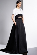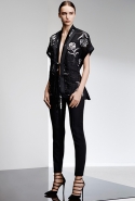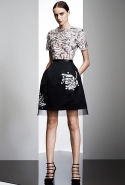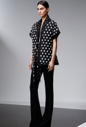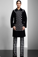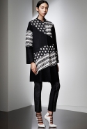 Прабал Гурунг выстроил коллекцию на основе сочетания образов камня и цветка. Цветок распознать несложно: он в разных вариациях появляется в виде принтов, вышивки на платьях и пальто, в форме юбок. Камень — материя грубоватая, чтобы напрямую инкорпорировать его в элегантный гардероб. Его олицетворяют холодные геометрические ансамбли в основном черно-белой цветовой гаммы: брюки и юбки, расчерченные сложносочиненной клеткой, черное пальто со вставкой в горошек, брючный костюм с бело-синими брызгами по черному фону.