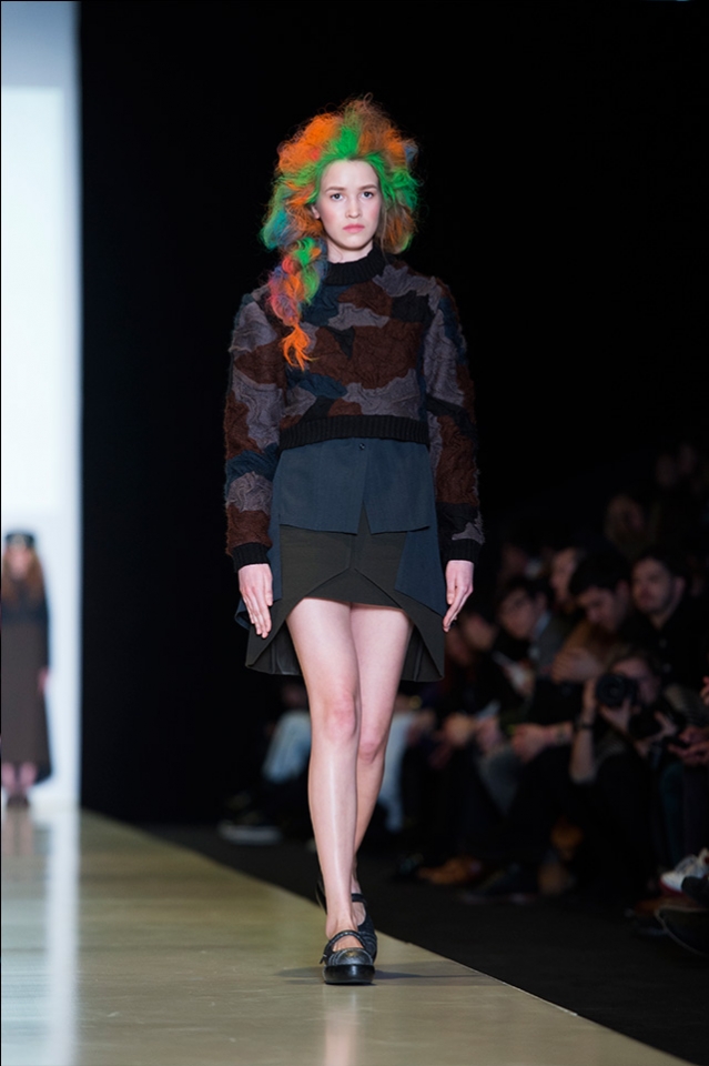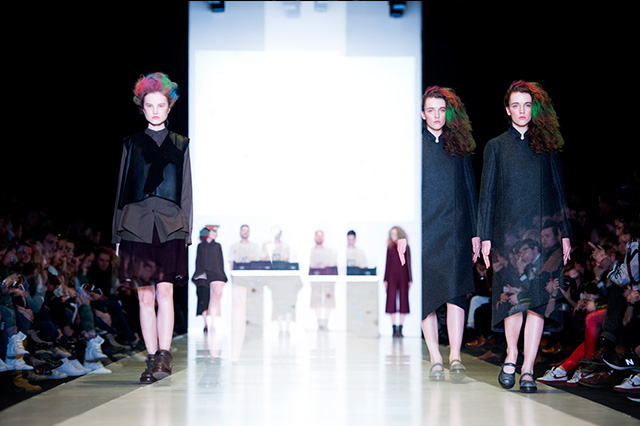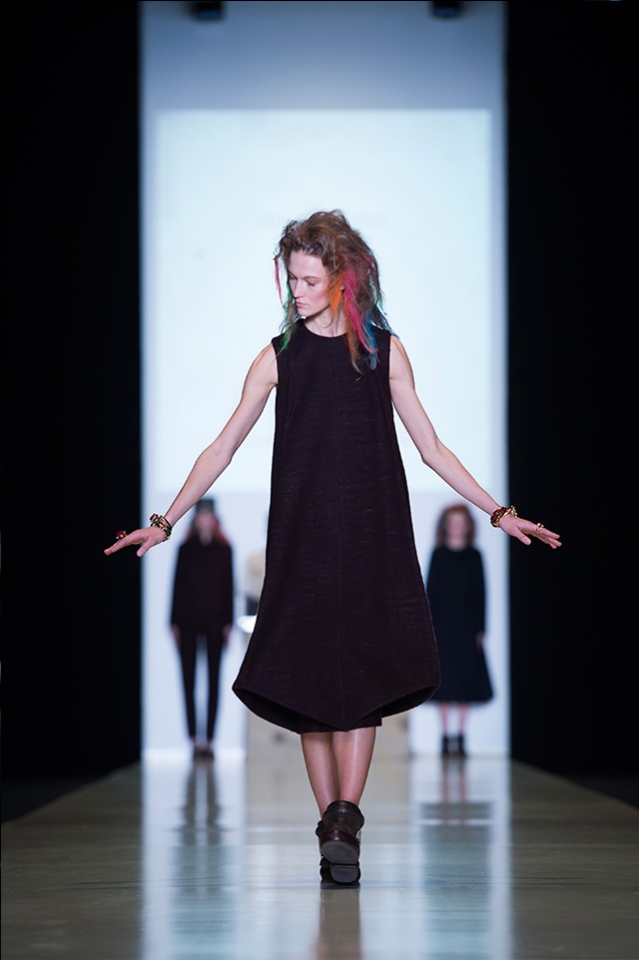 Особенно хочется отметить и музыку, за которую отвечали E!T & KMCH, участники движения Multiplayer! — их пульт расположился прямо на подиуме. Как выяснилось позже, они не только сделали саундтрек к показу, но и поставили само шоу всего за несколько часов. И звучит их сет на Московской неделе моды ничуть не менее убедительно, чем на клубных площадках, хотя окружает диджеев не возбужденная танцующая толпа, а тревожные девушки Рии Кебурии.