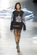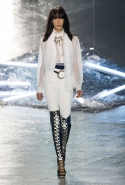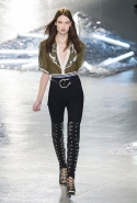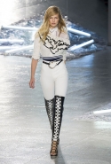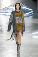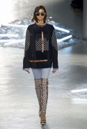 Модели Rodarte напоминают то ледяных принцесс, то бесстрашных покорительниц заснеженных земель из компьютерных игр — в зависимости от того, какие именно из четырех основных цветов коллекции сочетают дизайнеры в каждом выходе. На выбор предлагаются черный, белый, нежно-голубой и хаки, а вспомогательными становятся серебро и золото.