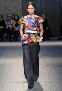 А после змеи и широких полос появляются принты, вдохновленные, кажется, абстрактным экспрессионизмом Джексона Поллока — родоночальника и главного представителя этого живописного движения. Абсолютно беспредметные полотна, брызки краски и переплетения цветных нитей неожиданно превращают коллекцию из классически женской (леопардовый и змеиный принты используются явно не для того, чтобы удивлять) в высказывание совершенно другого рода.
