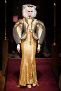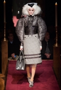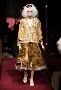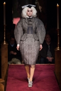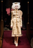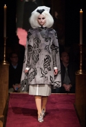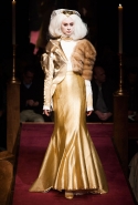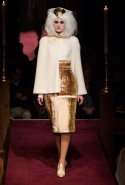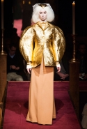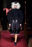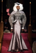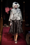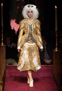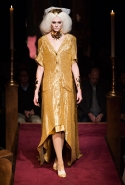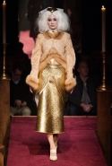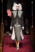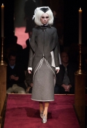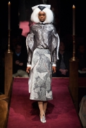 Том Браун относится к числу тех дизайнеров, которым куда ближе эстетика костюмера, чем эстетика модного дизайна. Поэтому и оценивать его коллекцию через привычные нам тренды, разговоры о крое и цвете совершенно не имеет смысла. Значение имеют только история, которую рассказывает Браун, и уровень мастерства, с которым он занимается технической стороной, "изнанкой" этой истории. C одной стороны, коллекция пропитана религиозным духом: темные, длинные платья, максимально пристойные и закрытые, неброские, но дорогие цвета. С другой — это своеобразный оммаж американской актрисе Мэй Уэст, одного из первых секс-символов американского кино, впервые с театральных подмостков и киноэкранов напрямую заговорившей о сексе, ее гипертрофированно женственному силуэту, ее белым волосам.
