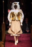 Завершается шоу Тома Брауна серией золотых выходов, что не слишком вписывается в концепцию довольно сдержанных католических церквей. Модели выходят на подиум под песню Sister Mary Gabriel says turn away from sin, а что именно это символизирует — отпущение грехов, религиозный экстаз или что-то совершенно иное, — остается только догадываться.