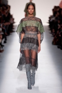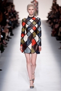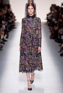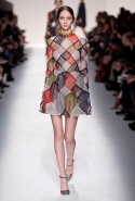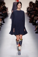 Хотя главной темой для обсуждения после показа Valentino стало то, что Анна Винтур, прославленный главред американского Vogue, сидела во втором (!) ряду, мы об этом упомянем только мельком, потому что уж очень хороша сама коллекция. От графичных ярких кругов и полосок дизайнеры постепенно ведут зрителя к более сложным вещам: платьям из темного, мрачного кружева, кожаным плащам с бахромой и, конечно, кукольным нарядам из цветных ромбов, невероятным вечерним туалетам и нарядным пальто. Цветочные принты, объемные вышивки, как абстрактные, так и вполне конкретные, из бабочек и лесных птиц — одним словом, красота. А чего еще ждать от Valentino? И последнее платье, завершающее показ, стало отличной финальной точкой — вышитые золотом по синему шифону звезды и солнышки на юбке, на груди — красное сердце, к которому тянутся со всех сторон, как лучики, мелкие складки.