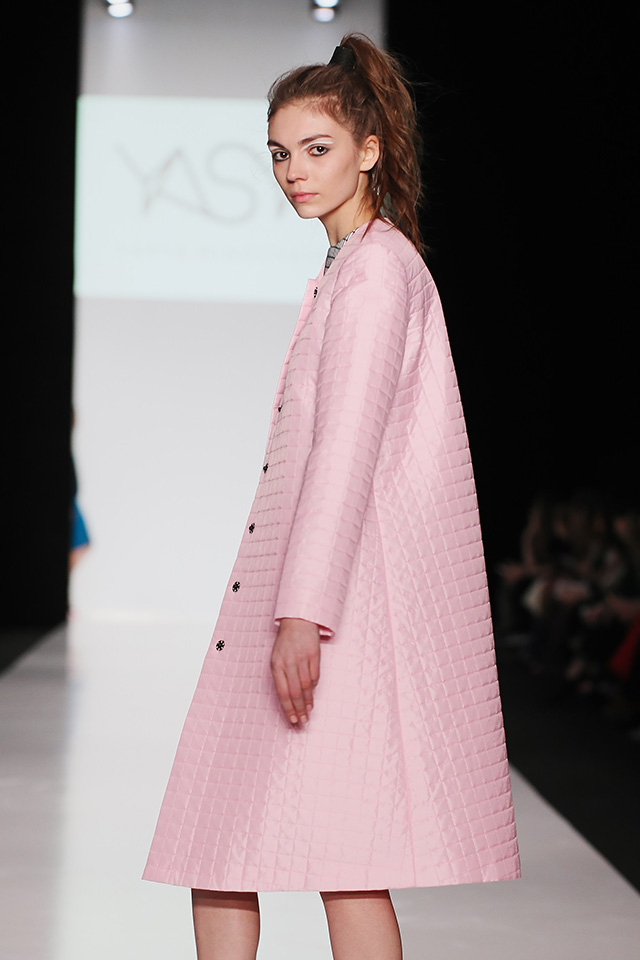 Под бодрый саундтрек на подиум выходят, будто пританцовывая в ритм, девушки в бомберах, юбках-трапециях, очень чистых по силуэту платьях, нежно-розовых стеганых костюмах, плащах — ясные цвета без лишних оттенков, необычные рифленые материалы, широкие полосы и геометричные вставки-блоки, явно читаются отсылки к 60-м и спортивные мотивы 90-х годов. Все вещи действительно очень простые и, казалось бы, незамысловатые, но отводить взгляд от подиума не хочется ни на миг — наверное, потому, что такую простую и ясную красоту на подиумах российских недель моды встречаешь нечасто. У нас есть, конечно, хорошие дизайнеры, но среди них практически нет тех, кто работал бы с повседневной одеждой. Это по большей части наряды для street style-хроник или вещи из разряда "обратите на меня внимание", "а этот принт станет хитом в Instagram". Но делать одежду универсальную и стильную, подходящую на каждый день — искусство не менее сложное, если позиционируешь себя как модного дизайнера, а не просто производителя базовой одежды вроде толстовок и тренировочных брюк. Добиться элегантности при максимальной простоте и при этом не позволить своей клиентке потеряться в толпе людей в Zara — миссия эта вполне выполнима, но справляются с ней не все. Выпускница Central Saint Martins и ее бренд Yasya Minochkina справляются точно.