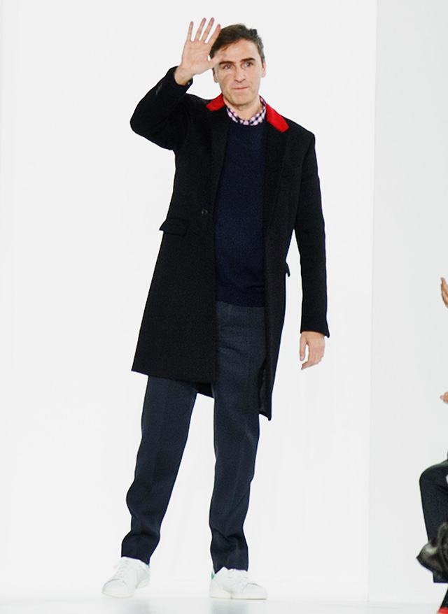 Из всех троих креативных директоров, в последнее время вставших во главе важных модных домов (эти трое, разумеется, Раф Симонс в Dior, Эди Слиман в Saint Laurent и Александр Ванг в Balenciaga), Симонс, кажется, вызывает теперь уже меньше всего споров. К его новому Dior привыкнуть гораздо легче, чем к слимановскому гранжу и прочим шуткам, да и выглядит он достаточно (хотя порой и чересчур) смелым, но при этом крепко завязан на старых традициях и знаковых вещах и силуэтах дома.