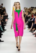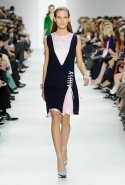 Избавляя коллекцию от лишних деталей, акцентируя внимание на чистых формах и цветах, Раф Симонс достигает практически совершенства — именно внешняя мишура помешала ему в прошлом сезоне. Вот и в этот раз лаконичные в остальном платья с подчеркнутыми карикатурными корсетными шнуровками талиями и бедрами выглядят намного сильней завершающих образов, полных крошечных блесток. Краткость и минималистичность не просто сестры таланта Симонса, а этого таланта правая и левая руки, без которых он — никуда.