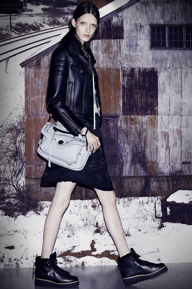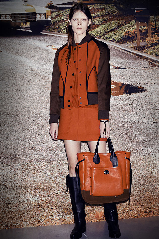 Целью Виверса было заново открыть Coach для более молодой, современной публики — и для этого он обратился к истории. Но не бренда Coach, а традиций американского стиля. Джинсовые куртки и куртки пожарных, дубленки с меховыми воротниками, большие пальто с куцыми школьными юбочками, спортивные бомберы. Еще больше подчеркивало эту связь оформление пространства — фоном стали фотографии Джоэля Стернфельда из книги American Prospects, снимавшего американскую провинцию 70-х. А черный свитер с желтыми звездами и ракетой Apollo USA в точности повторял свитер маленького Дэнни Торренса из "Сияния" — классики американского кино.
