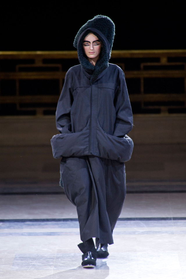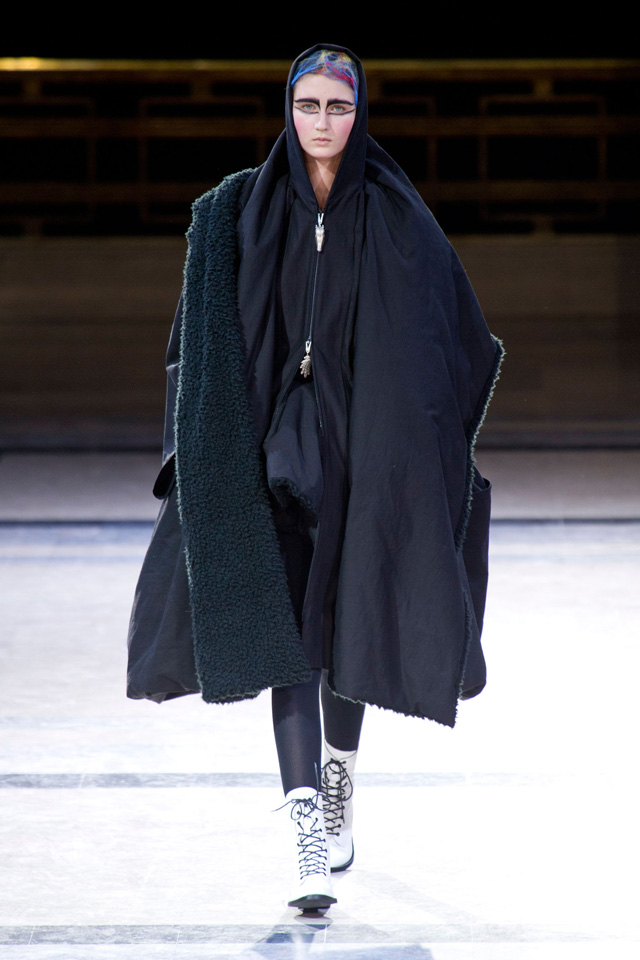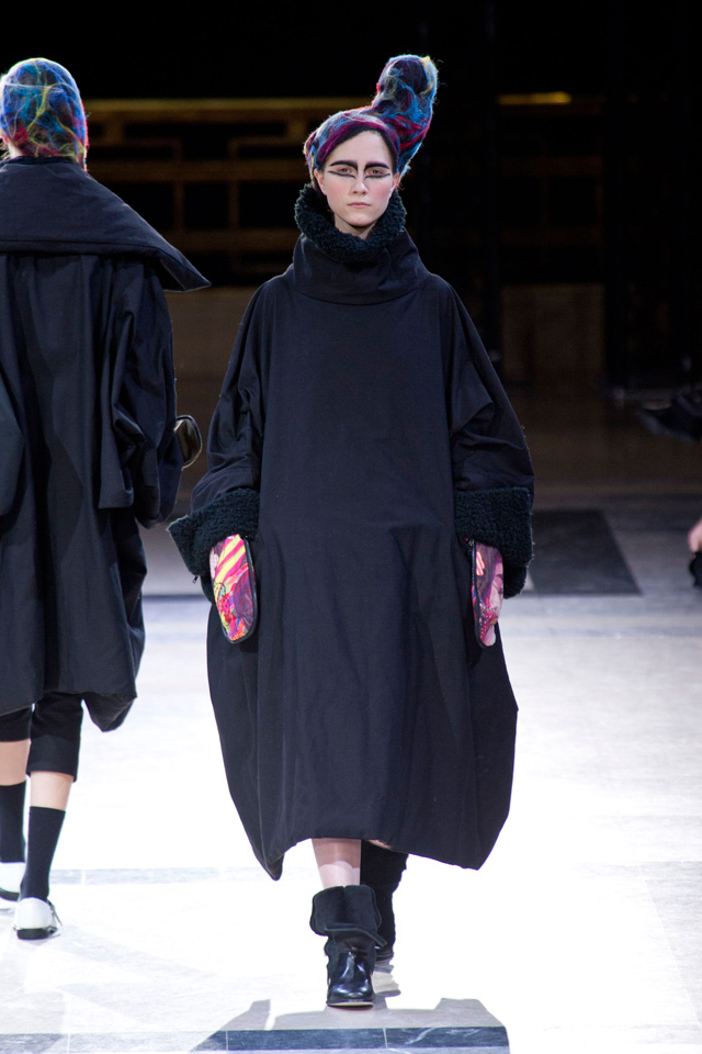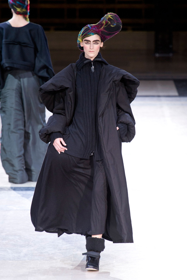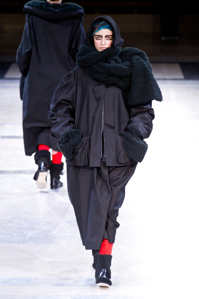 Таких объемов, как у Yohji Yamamoto в новом сезоне, мы давно не видели: картинно огромные черные вещи похожи на замысловатые бумажные фигурки оригами или бутоны экзотических растений. Вдохновение японский дизайнер черпает в богатой культуре собственной родной страны.