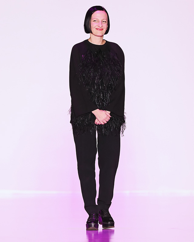 Черно-белую графичную гамму разбавляют мерцающий пыльно-розовый и голубой, моноблоки сияющего в розовой подсветке подиума атласа и плотной черной ткани сочетаются с кружевными вставками и вздымающимися, будто дышащими при ходьбе перьями марабу. Эта коллекция не из тех, что впечатляет сразу: wow-эффекта, как некоторые из предыдущих показов Tegin, она не вызывает. С ней, в общем-то, та же история, что и с последним фильмом Уэса Андерсона, который тоже про прошлое, но чуть более позднее: трудно сразу понять, это лучший фильм режиссера или просто одна из многих очень похожих друг на друга его лент, которые, в принципе, и так хороши. Но о судьбе Зубровки и в целом мира, в котором снова подошла к концу очередная прекрасная эпоха, поневоле задумаешься.