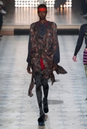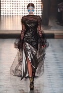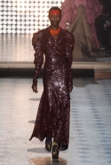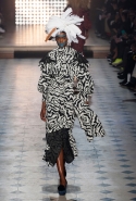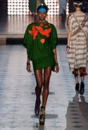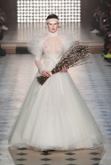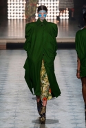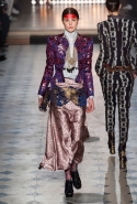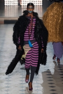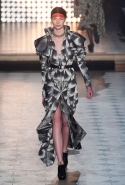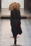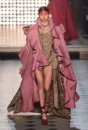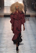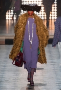 Макияж в духе русской сказки "Морозко" с кругами на щеках и яркими губами —только не красного, как у злобной старшей сестрицы, а алого цвета, боевой племенной раскрас — полосы и цельные геометрические фигуры на лицах — стали отличным дополнением к пронизанной этническими мотивами коллекции. Длинные украшения с кисточками, смешные шляпы и сутенерские диковатые шубы, целующиеся голуби как знак мира, миксы принтов и немного (ну ладно, много) цирка — все именно так, как и можно было ожидать. Хотя в розовое пончо из последнего выхода, целиком состоящее из воланов, или в невесту со связкой вербовых веточек вместо букета можно и влюбиться.