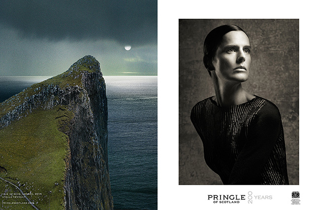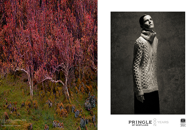 В рекламной кампании бренда Уотсон сопоставил портреты Стеллы Теннант и Люка Тредэвэя — в уютных пальто и джемперах крупной вязки — с побережьем острова Скай. И получилось настоящее произведение искусства, которое, кстати, можно было увидеть еще в начале года в лондонской галерее «Серпентайн». Таким образом шотландский бренд отпраздновал свое 200-летие и успех выставки Fully Fashioned: The Pringle of Scotland Story, которая открылась в апреле в Эдинбурге.