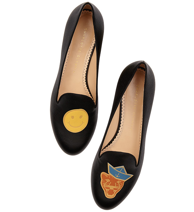 Конструкторы обуви давно не кажутся чем-то из ряда вон выходящим: на этом поприще попробовать себя успели множество обувных брендов и модных домов. У Шарлотт Олимпии же конструктор получился совсем не похожим на прежние версии: собирать пару предлагается не на сайте или в мастерской, а у себя дома, практически на коленке. Вместе с лоферами в коробке счастливая покупательница получит два листа цветных наклеек из кожи. На одном из них — буквы, словно вырезанные из британского букваря, на втором — 26 картинок-эмодзи, взятых из вселенной Charlotte Olympia. Чтобы показать девушкам, как пользоваться этим новшеством, дизайнер и ее команда сняли иллюстрированный буклет Charlotte Olympia's Guide to Accessorising, придумав подходящие сочетания для каждой буквы английского алфавита. «С» в нем, например, предсказуемо рифмуется с champagne.