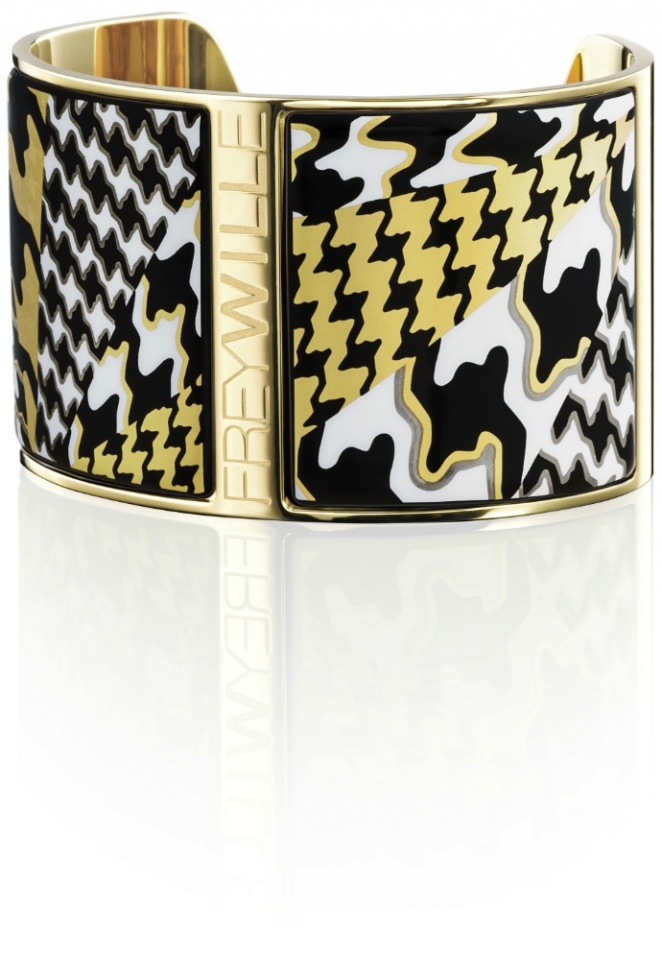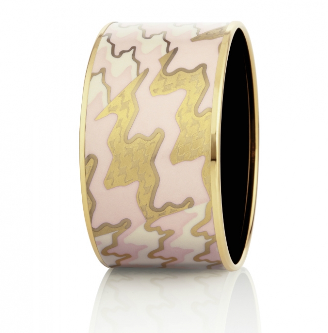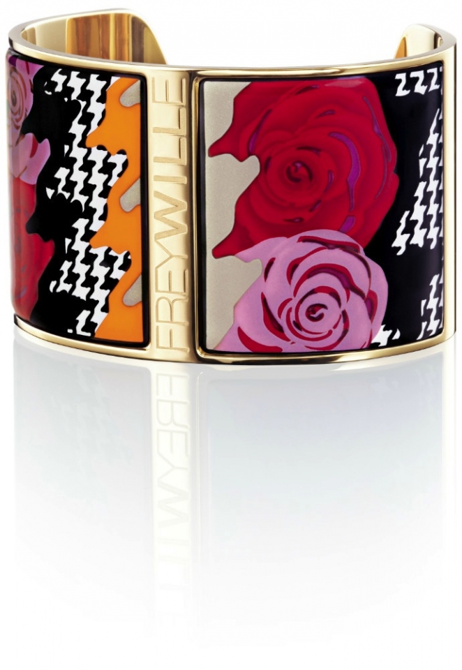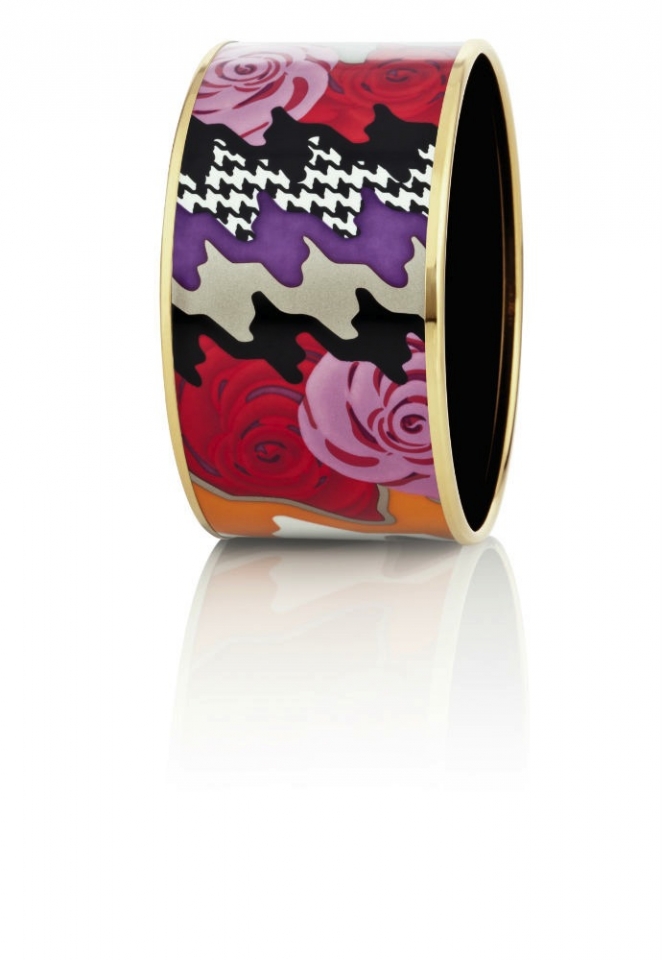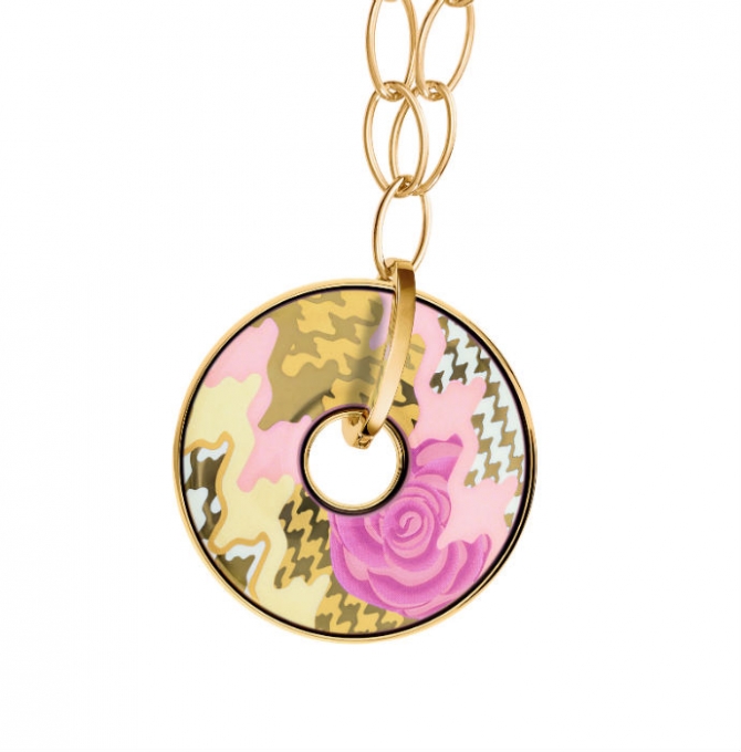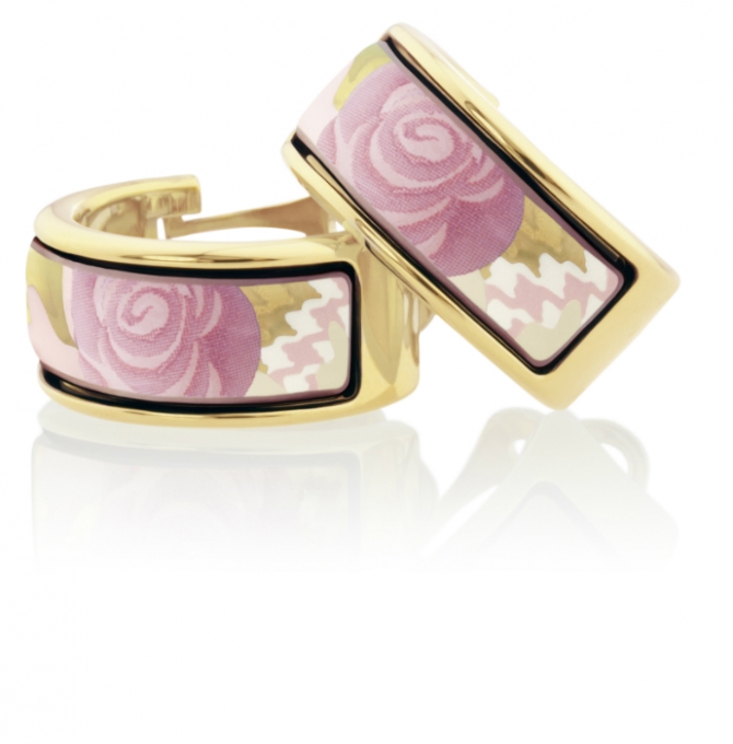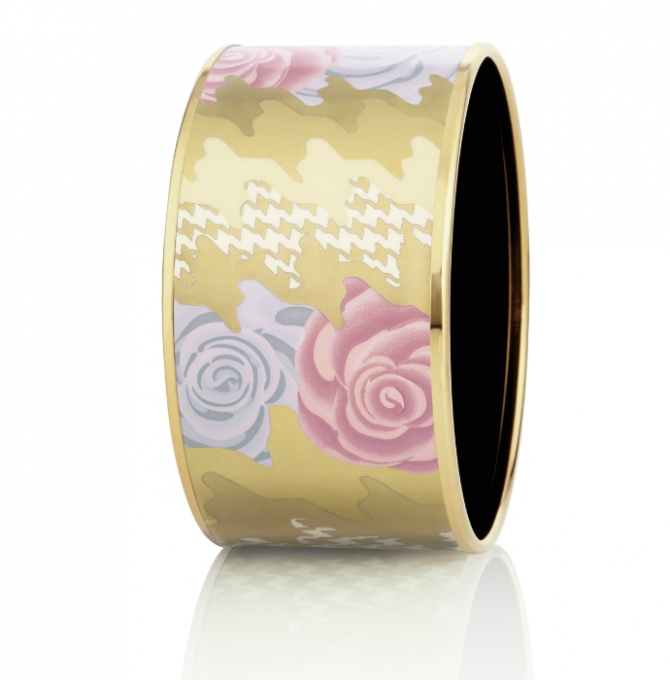Браслеты, серьги, кулоны, кольца и часы изготовлены из ювелирного сплава с золотым напылением и драгоценной эмалью. Украшения выполнены как в рисунке с розами, так и в минималистичном — только с изображением твида. Коллекцию можно приобрести как в ярком исполнении, так и в более нежном — пастельном.