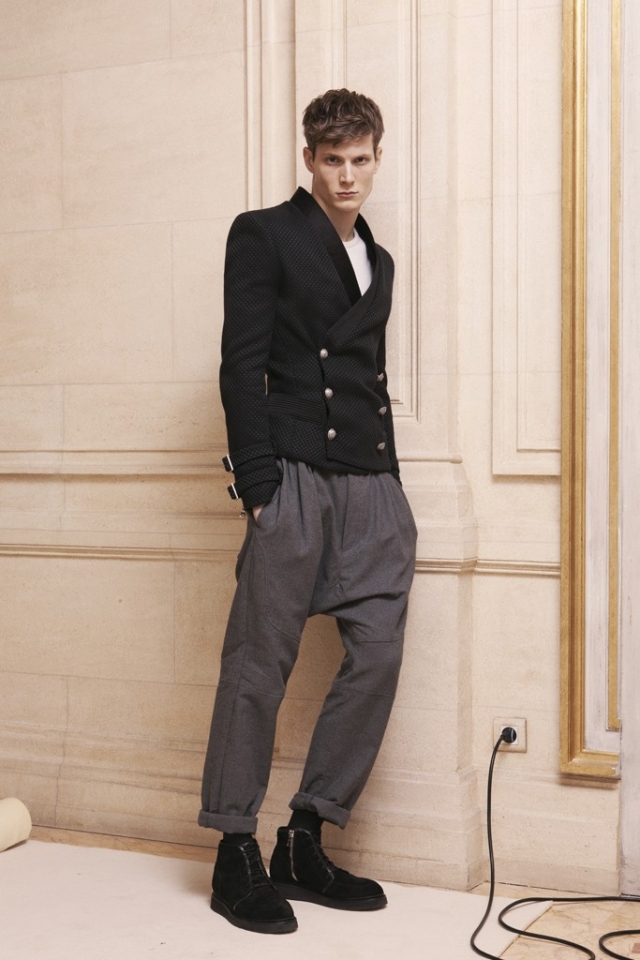 Основу коллекции французского дома Valentino составили классические серые и черные брюки и жакеты с кожаными вставками, напоминающими широкие пояса, а финальную часть показа ознаменовали смокинги в сочетании с бабочками и рубашками белого и темно-синего цветов. Благодаря кукольным пиджакам, укороченным брюкам и ботинкам на шнуровке из коллекции Carven кажется, что она вдохновлена костюмом Питера Пена. Дизайнер Раф Симонс показал практичную мужскую одежду: свободные брюки, теплые пальто и куртки, под которые надеты свитер и рубашка, а на ногах — тяжелые ботинки или беговые кроссовки, которые он создал для марки adidas. Спортивная тематика прослеживается и в коллекции Christian Lacroix, в которой появились комплекты из ветровок и свободных брюк, свободные комбинезоны и парки защитных цветов.