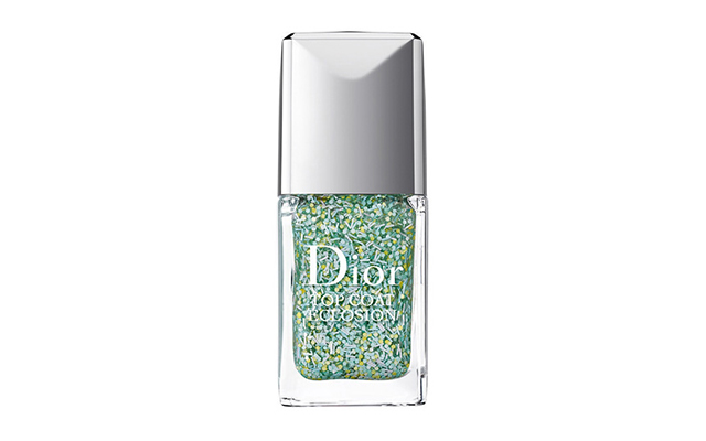 Завершающий штрих — весенняя линейка лаков, а самый красивый из них — лимитированный top coat с блестками разных форм и оттенков. Зеленые "листочки" с желтыми вкраплениями напоминают цветение мимозы и заставляют ждать прихода весны еще чуточку сильнее.