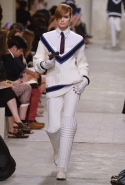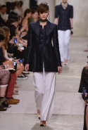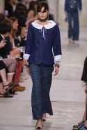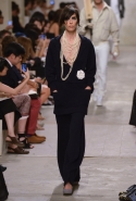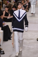 Атмосферной получилась и сама коллекция — под стать местечку Loewen Cluster. Здесь были и свободные светлые брюки, и джемперы пудрового цвета, и тельняшки, и даже пуловеры для игры в крикет — разумеется, в сочетании с белой рубашкой и галстуком, как их носила бы сегодня сама Коко. Были и черные жакеты — длинные и короткие, похожие на кардиганы и кожаные куртки. Была и азиатская тематика — пальто прямого кроя вкупе с принтованными брюками на манжетах, длинные шелковые халаты.