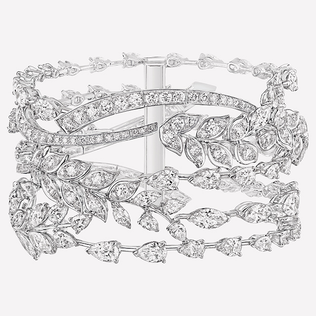Вдохновение для новой линейки high jewelry подарил один из главных «героев» детских воспоминаний Габриэль Шанель — пшеничный колос. Символ плодородия, изобилия и процветания служил Коко, родившейся 19 августа — в день, когда во Франции начинают собирать урожай, — счастливым талисманом, метафорой бесконечной энергии и творчества. Пшеничными колосьями — позолоченными деревянными и бронзовыми — буквально увиты ее апартаменты на Рю Камбон, а с руки преемника мадемуазель Коко и весенне-летняя коллекция Chanel 2010. Теперь же сухим гибким стеблям вторит форма ювелирных украшений Les Blés de Chanel из 62 предметов: браслеты, перстни, серьги, колье и броши из платины, белого и желтого золота с изумрудами, сапфирами, жемчугом, белыми и «солнечными» желтыми бриллиантами.