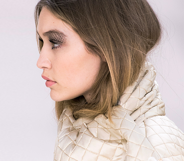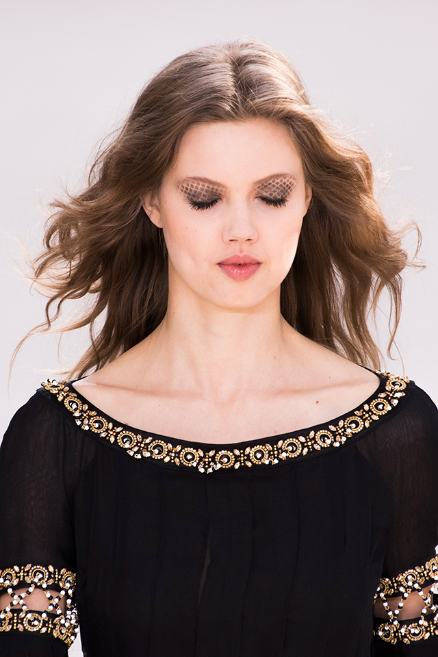 Автором «стеганого» макияжа стал Том Пешо. Секреты создания элегантного smoky eyes визажист не раскрывает, но можно предположить, что для него использовался какой-либо трафарет. Если так, то остается только надеяться, что его запустят в массовое производство.