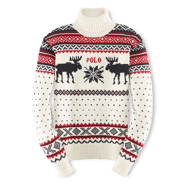 Для путешествия в Россию дизайнер одел соотечественников в уютные и теплые вещи: свитера с высоким горлом, вязаные митенки и шапки. Цвета фирменные: темно-синий, красный и белый. Украшают коллекцию изображения американского флага и российского орла. К ним дизайнер добавил и символ своего бренда — всадника на лошади.