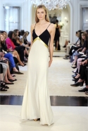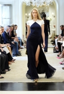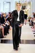 Хотя нам и трудно представить самих себя на отдыхе, гуляющих по улицам в этих роскошных молочно-белых брючных костюмах или золотых юбках, перетянутых ремешками на талии, нашим представлениям об идеальном отпуске эта коллекция в точности соответствует. В нем нет ни морских болезней, ни джетлагов, ни опасных насекомых, ни ожогов от солнца, ни потерянного багажа — поэтому и девушки Ralph Lauren, живущие в этом прекрасном мире, всегда одеты с иголочки. Вокруг шей вьются облаком пышные жабо, белые брюки полощутся на ветру, у черного костюма обнаруживается белоснежная подкладка, а босоножки с сумками словно отлиты из чистого золота, словно какие-нибудь сережки. Но эта элегантность, к счастью, совсем не чопорна — пафос снимает задорный горошек, который то красуется на платье, то поглядывает с надетых со строгими костюмами галстуков.
