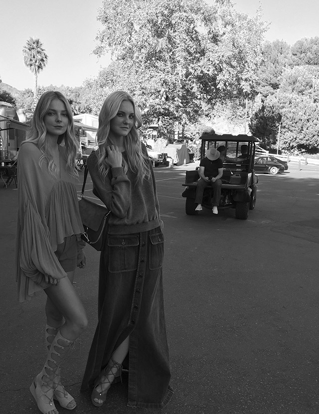 "В этом сезоне я искала истинную красоту 70-х. Обеим, и Кэролайн, и Энико, присущ образ эры 70-х: растрепанные волосы, свежесть и естественное сияние, нежная кожа в веснушках... Все это напоминает мне о женщинах того периода", — комментирует дух кампании креативный директор Chloé. На этот раз Клэр Уэйт Келлер была вовлечена в процесс целиком и настолько вдохновилась, что запечатлела съемки на камеру, не побоявшись стать в один ряд с Инез ван Ламсвеерде и Винудом Матадином, которые отвечали за конечный результат.