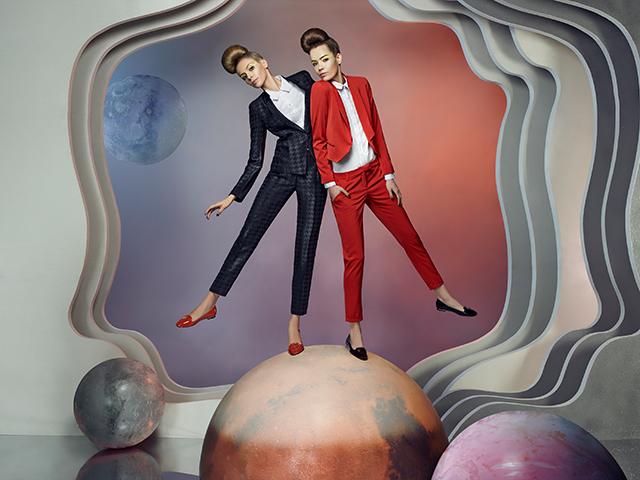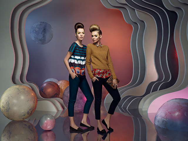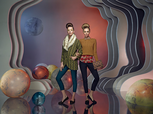 Стать настоящими космическими туристками девушкам-моделям, к сожалению, не довелось. Футуристические декорации для рекламной кампании выстроили прямо в Москве в съемочном павильоне. Костюмы у модниц-путешественниц тоже не слишком типичны для инопланетянок или воинственных покорительниц галактики: они больше похожи на героинь историй Кира Булычева, который придумал главную мечту всех мальчишек, чье детство пришлось на середину 80-х — нашу любимую "гостью из будущего" Алису Селезневу. Платья с воротничками как у примерных школьниц, костюмы и свитшоты на фоне необычных инопланетных декораций смотрятся особенно неожиданно.