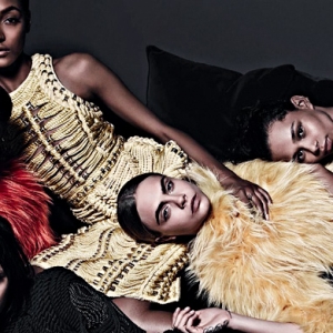Фотографом и стилистом кампании вновь выступил тандем Марио Сорренти и Кэти Гранд. На снимках Джексон позирует в черной кожаной мотоциклетной куртке бренда, надетой на обнаженное тело, а Кара и Джордан — в вязаных платьях Balmain и габаритных серьгах-обручах.