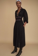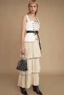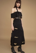 Круизная коллекция Sonia Rykiel, несмотря на обилие принтов, получилась скорее спокойной и расслабленной, чем веселой и разудалой. Креативный директор марки Жюли де Либран вновь обратилась к 70-м — десятилетию, отсылки к которому за последние пару лет модной общественности могли бы уже и надоесть, но, как ни транно, дизайнерам и их клиенткам все еще не приелись. Даже несмотря на то, что из сезона в сезон повторяется в общем все тот же набор вещей. Не стал здесь исключением и «круиз» французской марки — в нем те же свободные платья с широкими юбками и рукавами, пальто, костюмы с юбками миди, широкие брюки и кюлоты, воздушные блузы художников. А также три других тренда, популярных в этом весенне-летнем сезоне: испанская тема с ее собранными из оборок платьями, обрезанные плечи и чокеры. Их, как доказывает своей коллекцией де Либран, можно носить и без отсылок к 90-м, когда ожерелья этого типа стали абсолютным must have и откуда, собственно, и перекочевали в 2016-й.