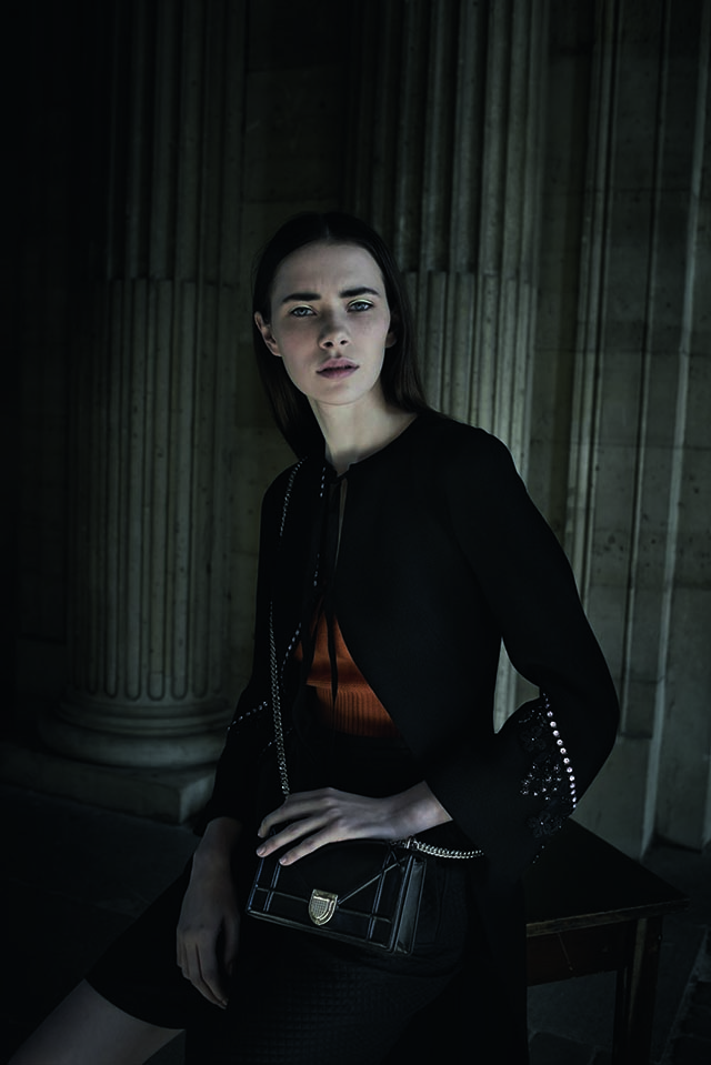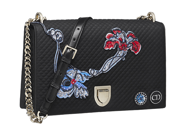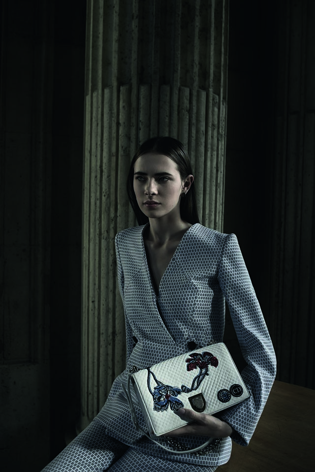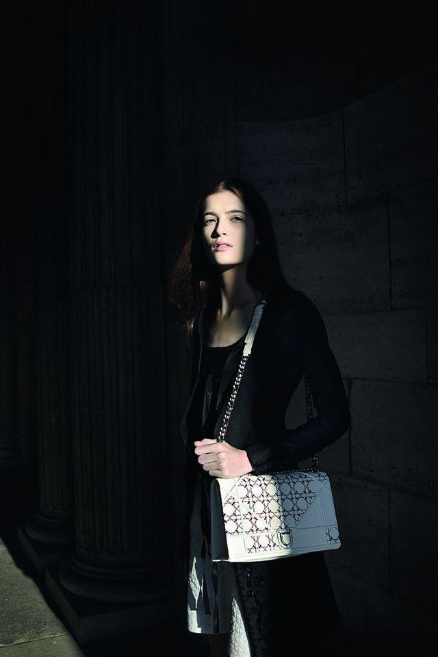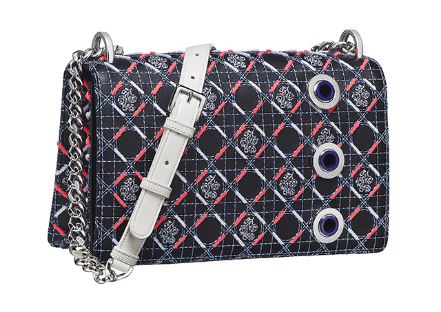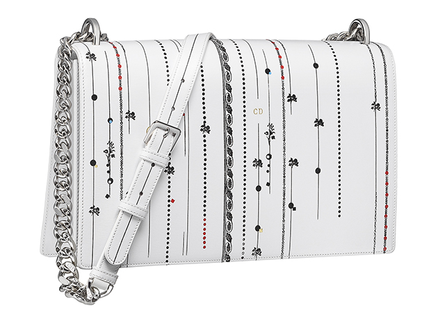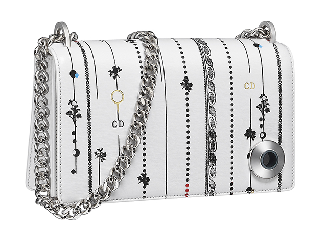 Новой сумке еще нет и полугода, а ее уже можно купить в бутиках Dior по всему миру. В новой коллекции Раф Симонс не побоялся сыграть на контрастах и украсил традиционную сумку из кожи цепочками, аппликациями, необычными принтами и даже «дверным глазком».