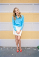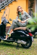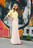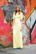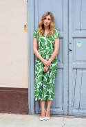 Отправной точкой для весенне-летней пре-коллекции стала Древняя Греция, а главным орнаментом — лавровый лист. Главные цвета коллекции — лимонный, персиковый, светло-бирюзовый, лавандовый, пыльно-розовый и серо-голубой. В ней, как и всегда, много женственных и романтичных вещей — летящих платьев, длинных юбок и шелковых блуз. С выбором модели команда не прогадала, Светлане такой образ очень к лицу!
