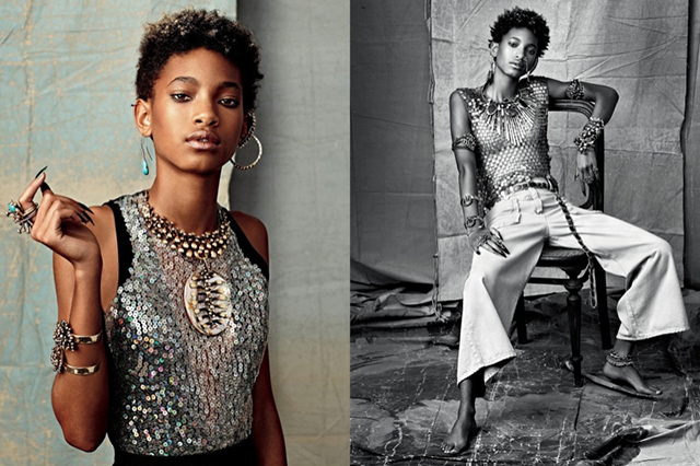 Уиллоу Смит всего 14, а она так уверенно позирует перед камерой в платьях Pucci, Tom Ford и Kenzo! В новой весенней фотосессии в стиле бохо для журнала юная модель появилась с длинными ногтями и в ярких массивных украшениях — cверстницы бы себе такое не позволили.