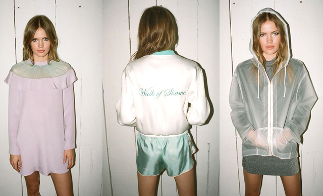 Под минус Дрейка и вокал одной из участниц российской группы Canicool в одежде Walk of Shame позирует и дурачится модель Юлия Васильцова. Она примеряет короткие серебряные платья, костюмы с пижамными шортиками и принтами переводных татуировок, бомберы с птичками на спине и майки со скриншотами из порно 70-х.