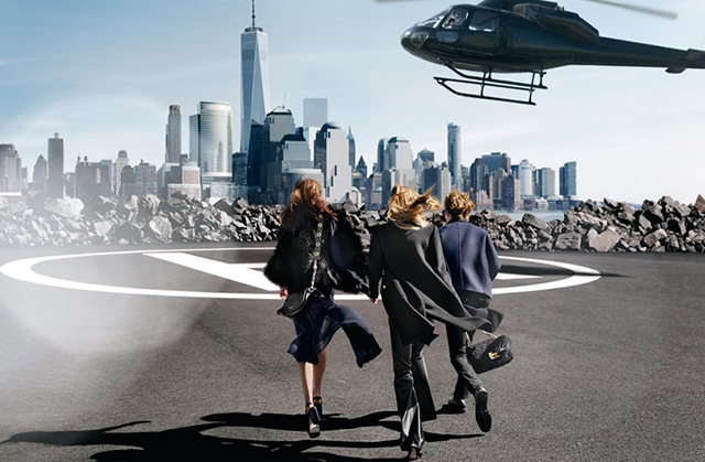 Для съемок новой рекламной кампании фотографу Марио Тестино пришлось забраться на самый верх небоскреба: сложно найти лучшее место, чтобы запечатлеть моделей, позирующих внутри вертолета. Акцент был сделан на аксессуарах из осенней коллекции. Сумки и очки сняты крупным планом, что позволяет рассмотреть их в мельчайших деталях.