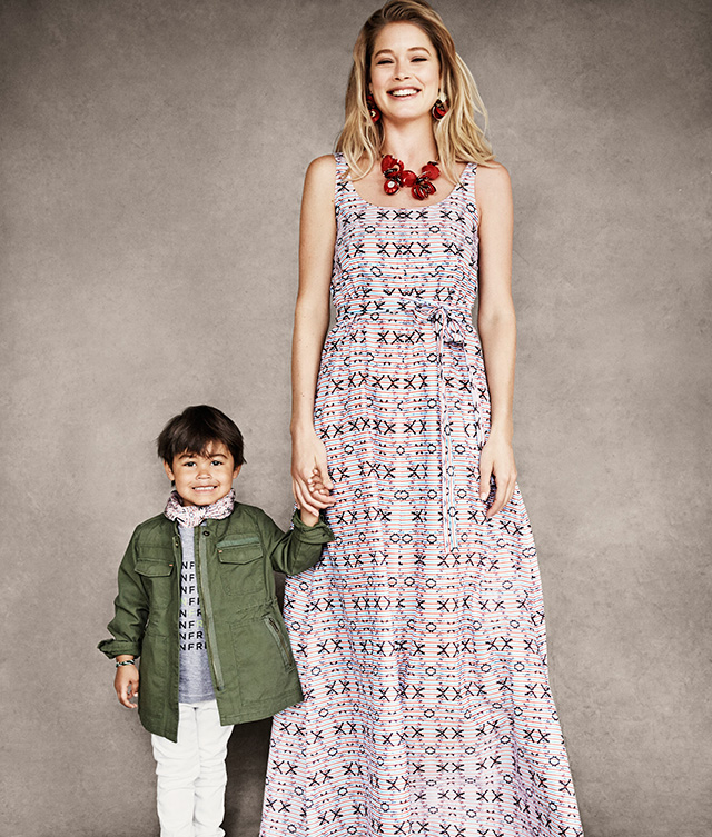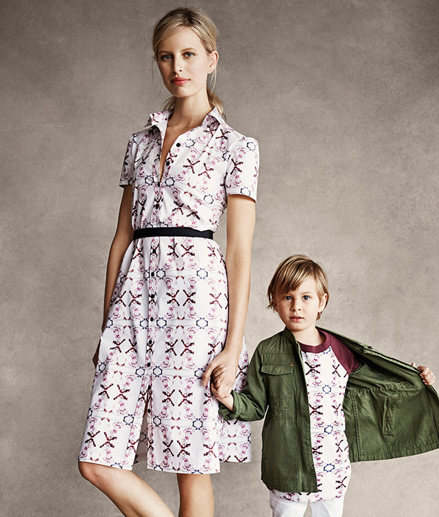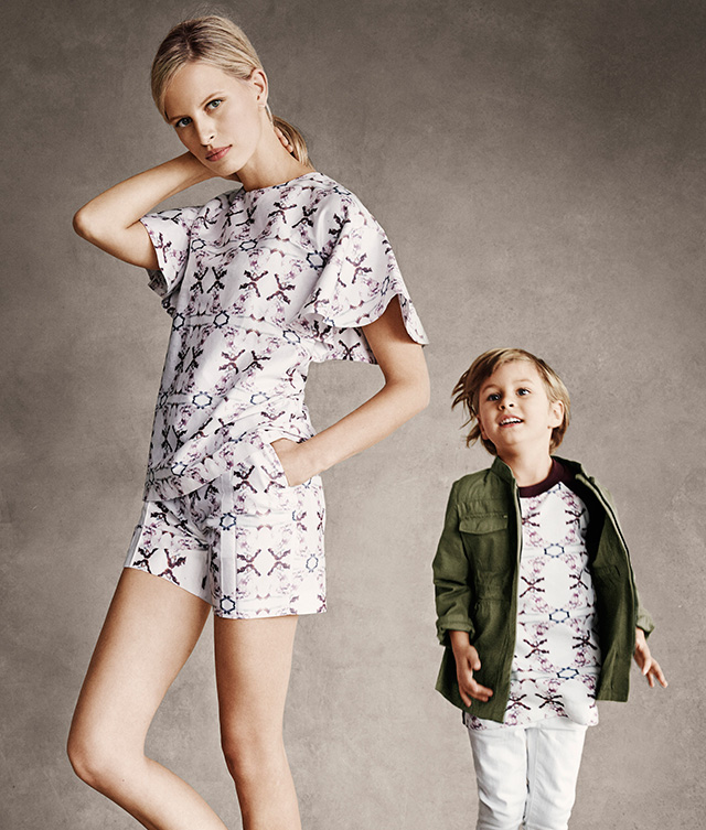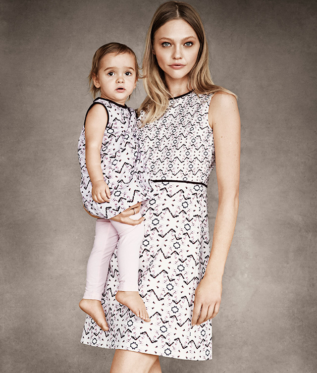 Кто-то из дизайнеров представил парные наряды для мам и их детишек: так, например, Chloé выпустили взрослый комплект из шортов и футболки с пышными рукавами, а для дочки такой модной мамы создали крохотное платье с тем же принтом и объемными воланами. А кто-то выпустил вещи не только модные, но и очень практичные: у Alexander McQueen кроме красивого легкого шарфа есть детское покрывало, у Marni и Жизель Бундхен (она ради проекта тоже ступила на тропу модного дизайна) — нагрудники, а Диана фон Фюрстенберг предложила сумку для хранения детских одежек.
