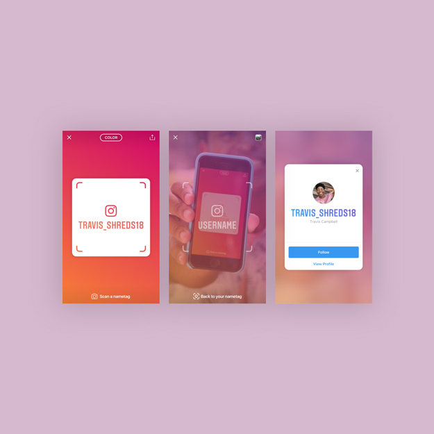 Для того чтобы перейти в профиль владельца карточки Nametag, вам нужно навести на нее камеру в режиме Stories. Карточку можно редактировать, изменяя ее цвет и добавляя стикеры и эмодзи. Аналогичные функции уже появились в Facebook, Twitter и Snapchat.
